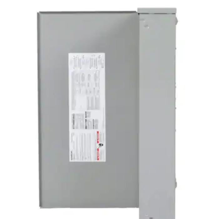 Siemens Standard Main Lug Load Center, Series: READY STANDARD SN Series, 200 A, 120/240 VAC, 100 kA Interrupt, 3-Wire Wiring Configuration, Q Breaker, 1 ph, 24 Spaces, 48 Circuits, Aluminum Bus, Plug-On Neutral Type, Flush, Surface Mount, NEMA 1, Gray, 60 to 75 deg C, 27.13 in H x 15.5 in W, Additional Information: 26 in H x 14-1/4 in W x 3-7/8 in D Box