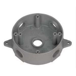 BWF® Weather-Proof Outlet Box, 5 Outlets, 1/2 in Hub, 4-9/16 in Length, 4-5/8 in Width, 2 in D, Round Shape, Die-Cast Construction, Surface Mount, 16.5 cu-in, Metal Body, Gray, Powder-Coated
