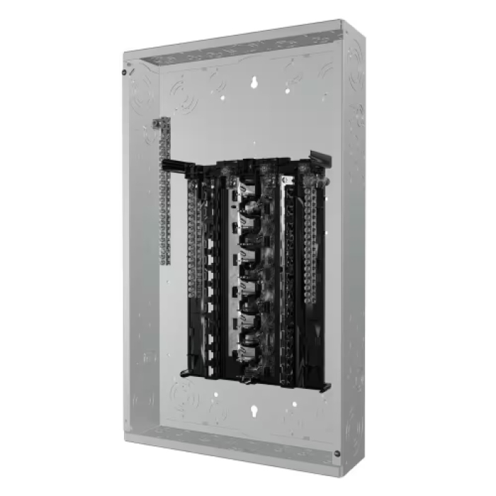 Siemens Main Lug Load Center, Series: SN Series, 125 A, 120/240 V, 100 kAIC Interrupt, 3-Wire Wiring Configuration, 1 ph, 24 Spaces, 48 Circuits, Aluminum Bus, Plug-On Neutral Type, NEMA 1, 24 in L x 14.25 in W x 3.88 in D Enclosure Type Box Size, Powder-Coated, Gray, 25.13 in L x 15.5 in W x 3.88 in D