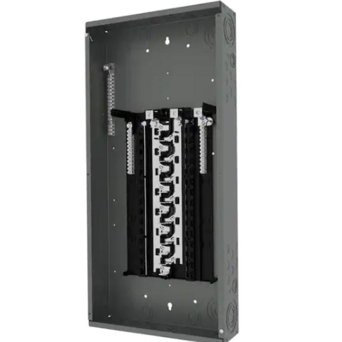 Siemens Main Lug Load Center, Series: SN Series, 200 A, 120/240 V, 100 kAIC Interrupt, 3-Wire Wiring Configuration, 1 ph, 30 Spaces, 30 Circuits, Aluminum Bus, Plug-On Neutral Type, NEMA 1, 30 in L x 14.25 in W x 3.88 in D Enclosure Type Box Size, Powder-Coated, Gray, 31.13 in L x 15.5 in W x 3.88 in D