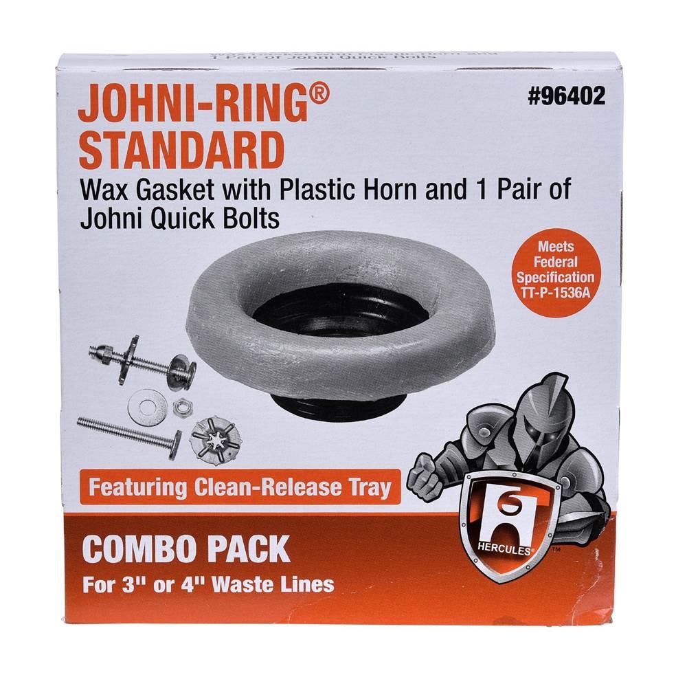 HERCULES® Johni-Ring® combo packs come with a soft, flexible, high-grade petroleum wax ring with plastic horn and either a pair of brass Johni-Bolts® or Johni quick bolts. Johni-Ring® wax gaskets provide a permanent, sanitary, gas and watertight seal on most types of water closets. Behold the power of Hercules®, products built to last and trusted by plumbers to withstand even the toughest conditions.