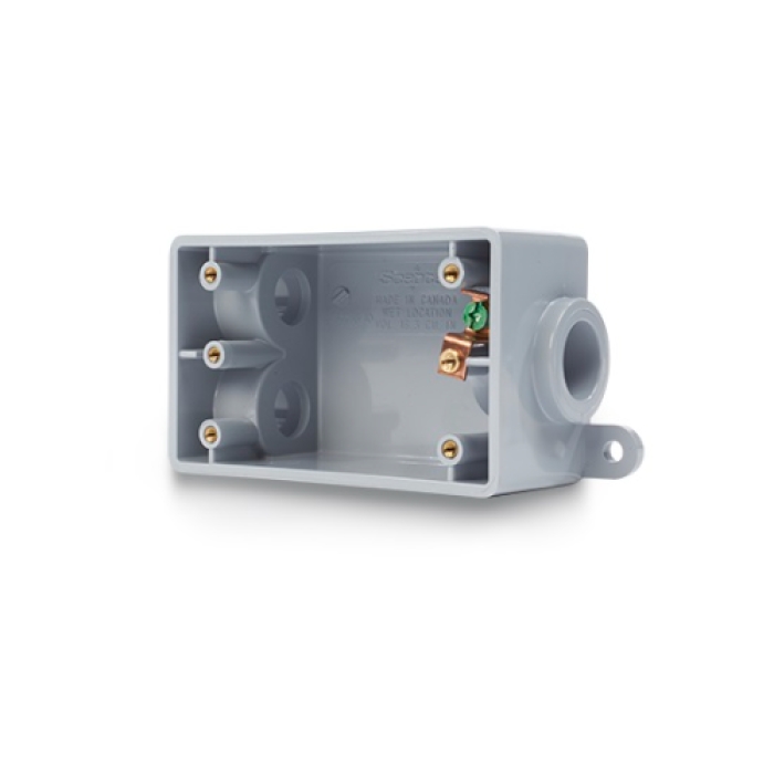 F-Series single gang boxes are made from durable and lightweight PVC and come with 1/2 in, 3/4 in and 1 in entry hubs all-in-one box. Designed for indoor and outdoor installations, single gang boxes include molded mounting feet and come in a variety of configurations.
