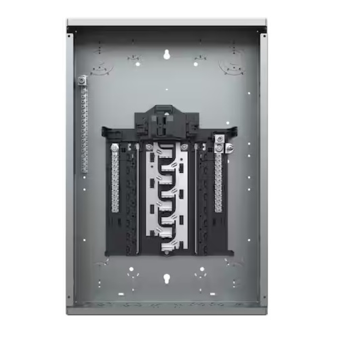 Siemens Main Breaker Load Center, Series: SN Series, 100 A, 120/240 V, 22 kAIC Interrupt, 3-Wire Wiring Configuration, 1 ph, 16 Spaces, 32 Circuits, Aluminum Bus, Plug-On Neutral Type, NEMA 1, 21 in L x 14.25 in W x 3.88 in D Enclosure Box, 22.13 in L x 15.5 in W x 3.88 in D, Powder-Coated, Gray