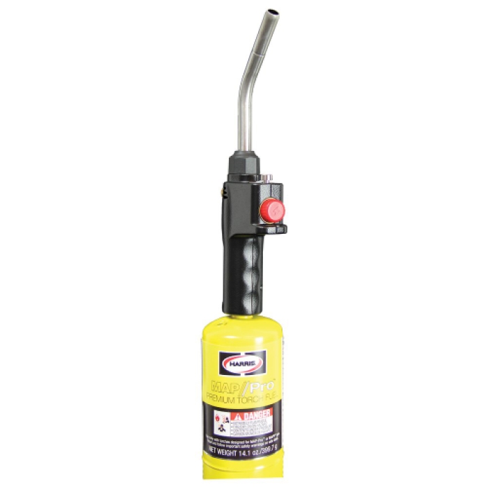 Model HSLT604HD air fuel hand torch provides high performance and convenience to professional heating, ventilation, air conditioning, plumbing and refrigeration contractors. Built with heating performance, temperature consistency and flame control in mind, a Harris® hand torch is the perfect partner for demanding brazing and soldering applications. This heavy-duty trigger torch is for use with MAP-Pro® and propane.